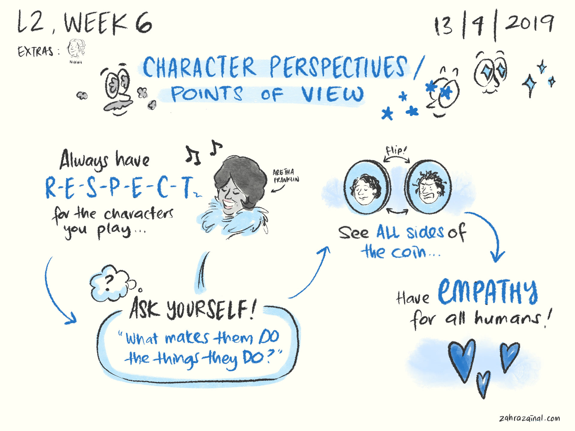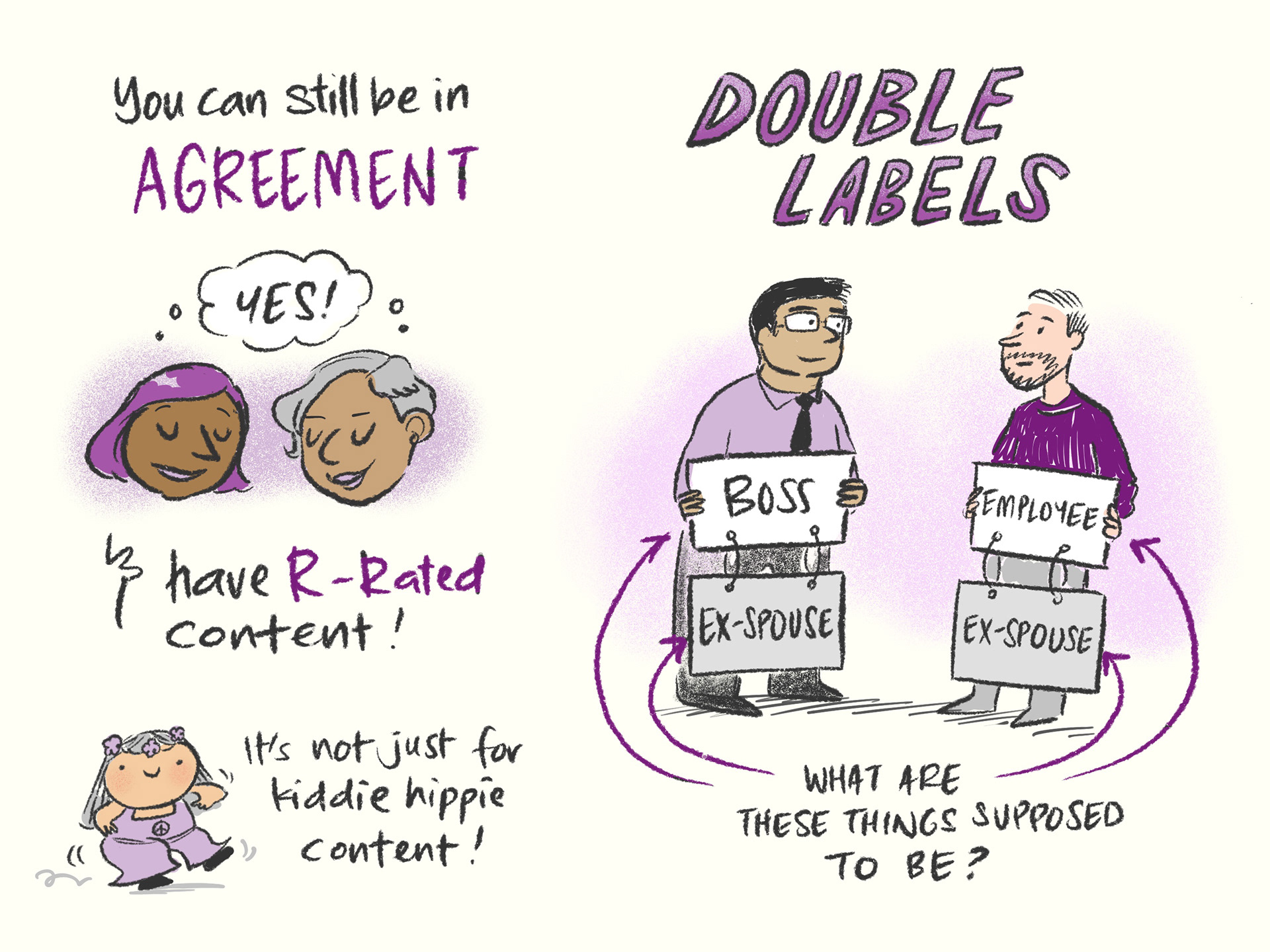 As part of my ever-continuing life education, I took several improv courses at The Improv Conspiracy. To help me learn, I created illustrated notes and shared them with the rest of my class. Improv has a lot of good human lessons, and it was great to play with other adults!