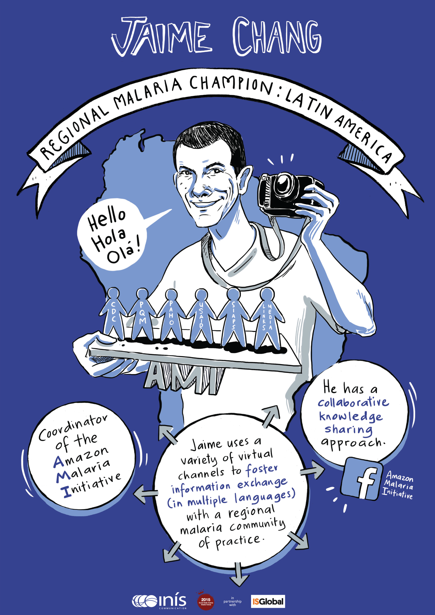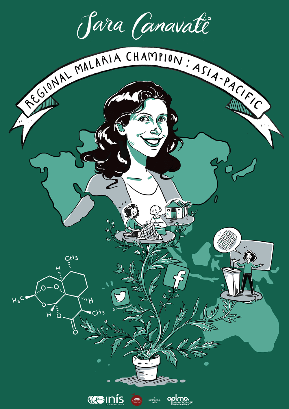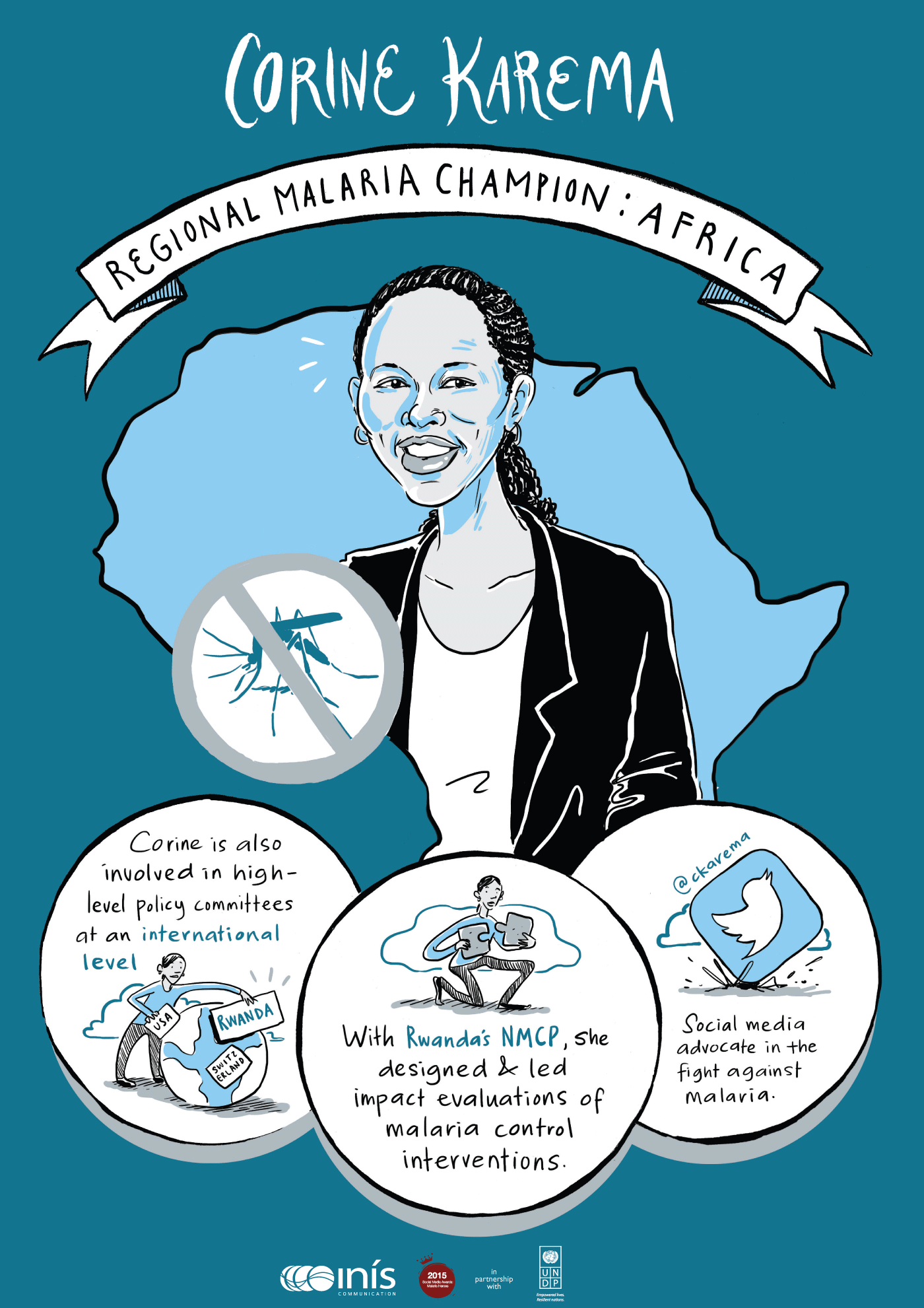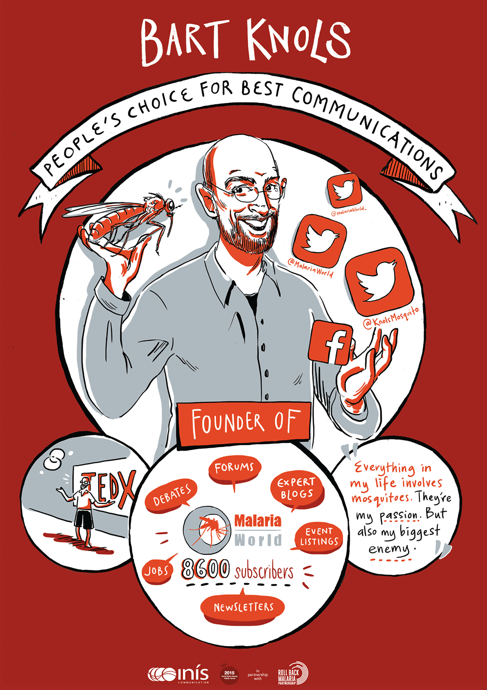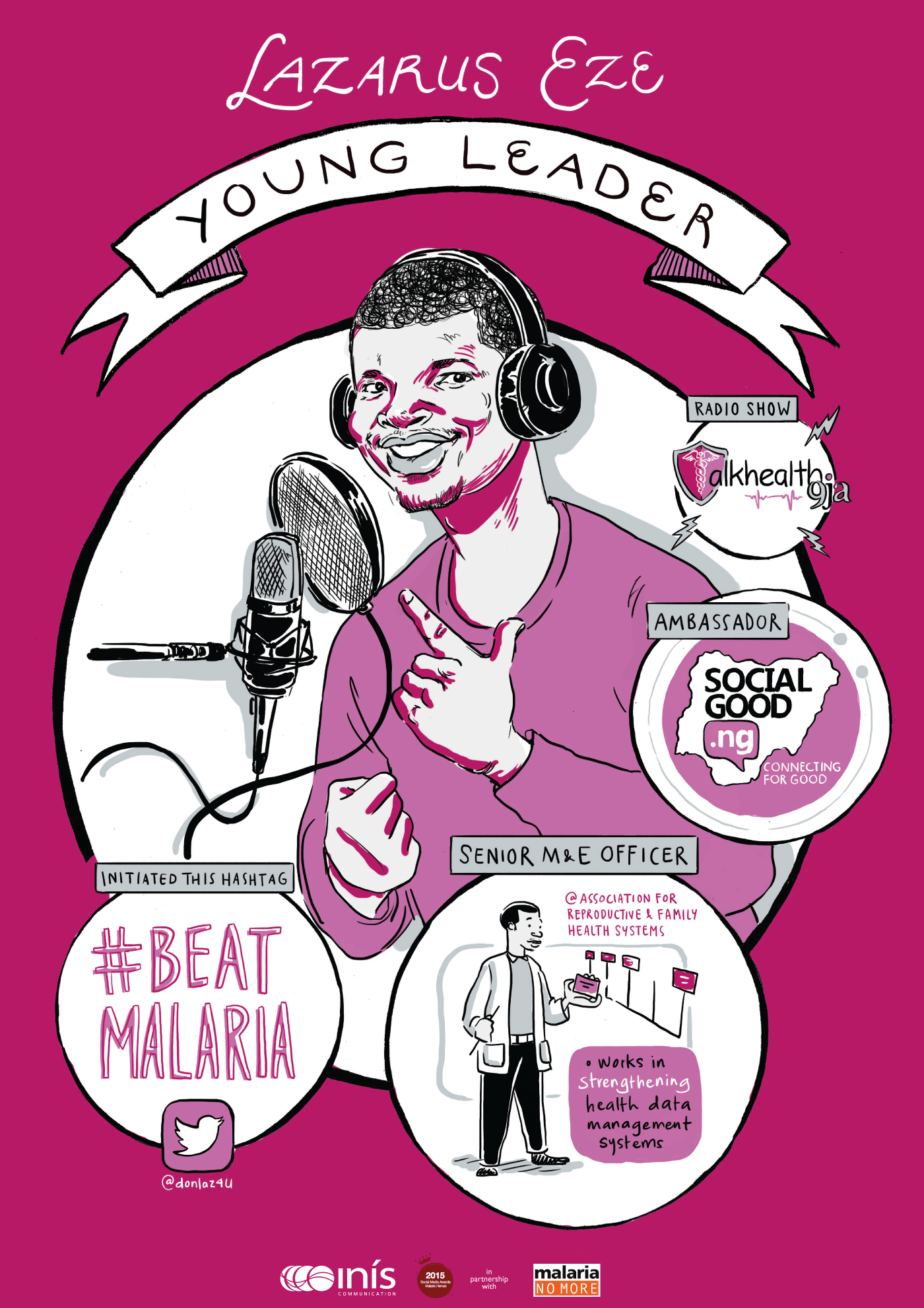 Illustrations of winners of the Social Media Awards in malaria awareness.